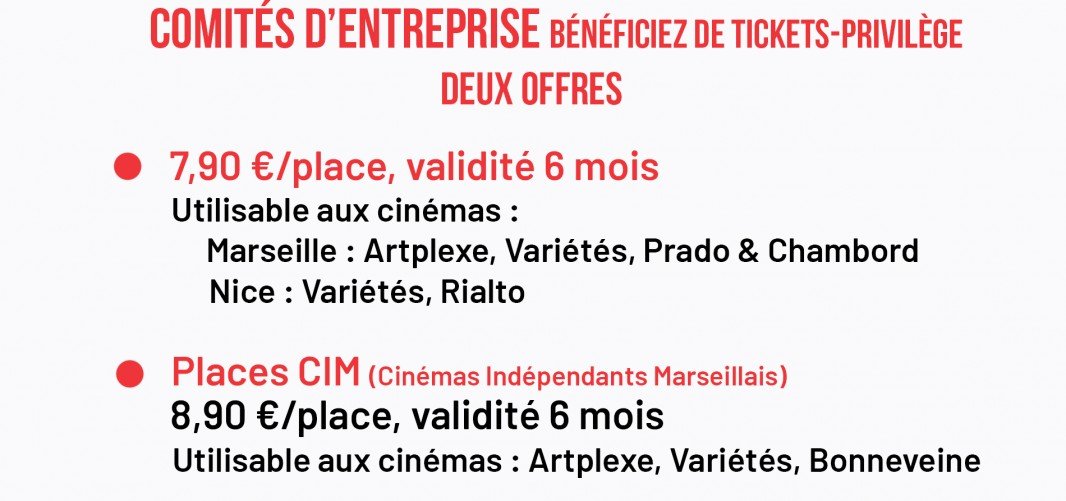 ★ COMITÉS D'ENTREPRISE 2 CINÉMAS